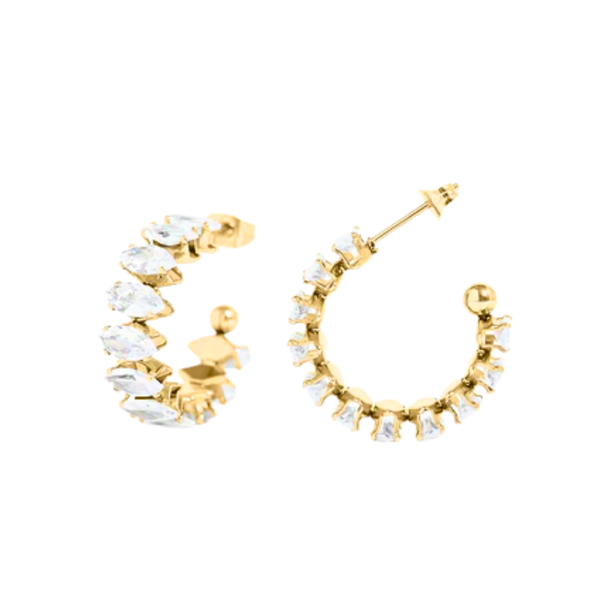 Adorn yourself with these glamourous open hoop earrings, featuring a captivating marquis-cut cubic zirconia stone. This will add just the right amount of sparkle. An impeccable choice for those seeking versatile sophistication that transitions seamlessly from work to evening.